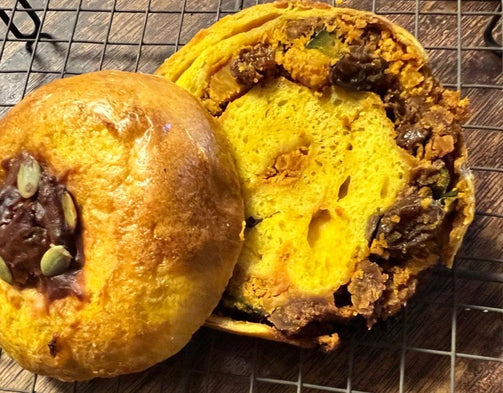 秋冬限定。ビターなカラメル味のかぼちゃにラムレーズンをあわせました。こっそりカラメルビスケットも入って具材ぱんぱんです。