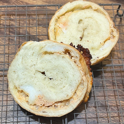 プレーン生地に明太子、お餅、チーズを入れました。和!です。